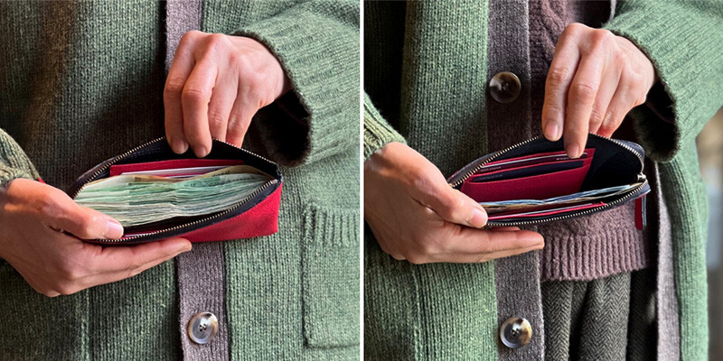 사진과 같이 지페를 꽤 넉넉히 넣을 수 있는