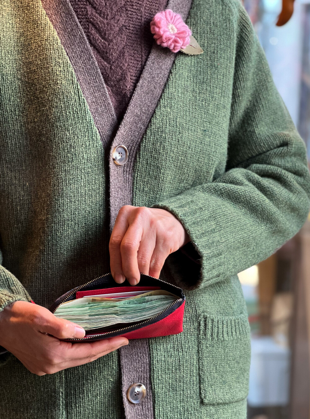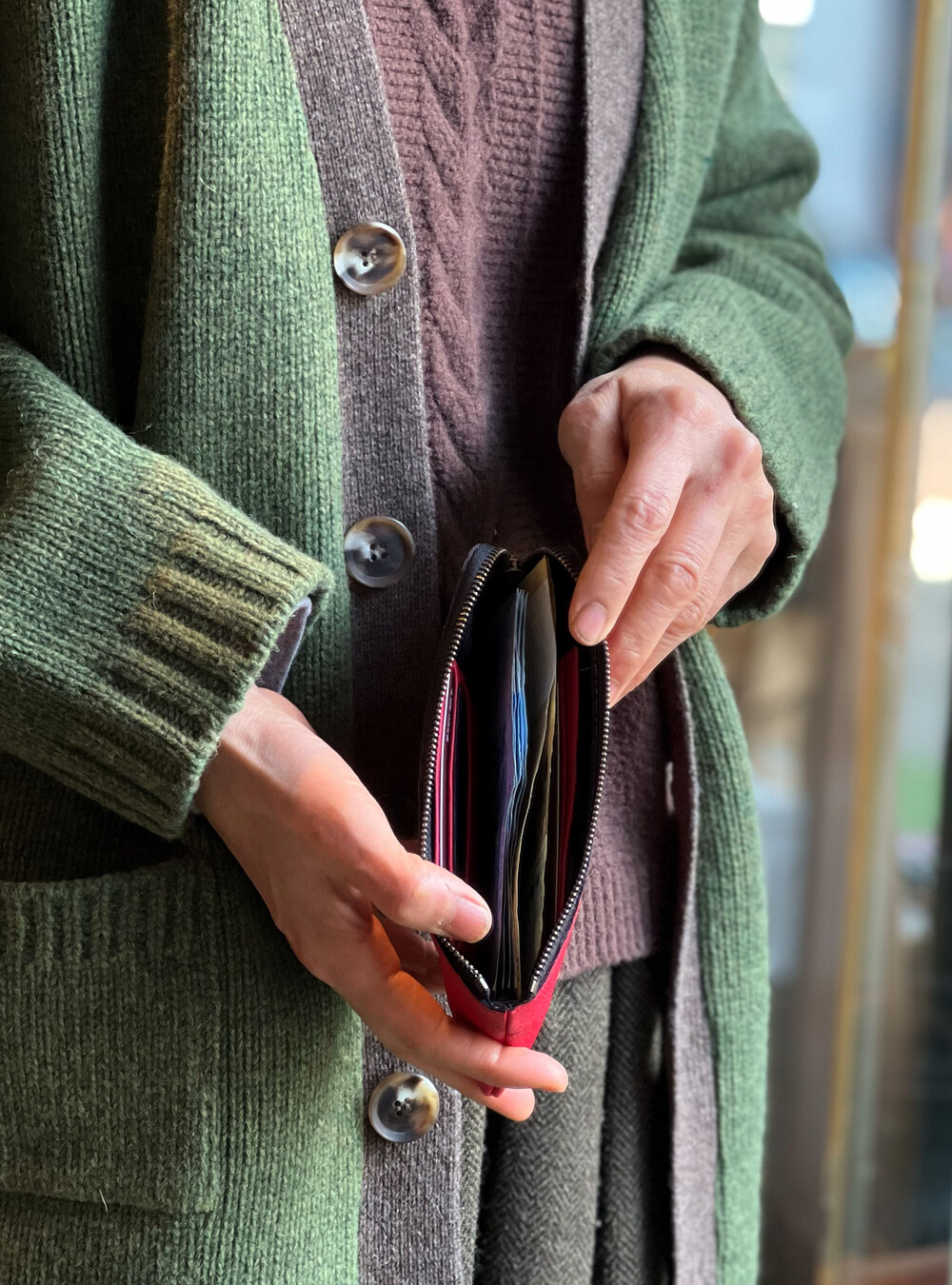 소량의 지폐와 카드만